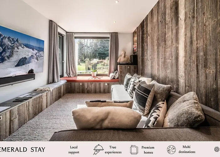 Vila Chalet Aman Argentiere Chamonix - By Emerald Stay je umístěna 7 km od Lyžařský vlek Les Praz, je 2-ložnicové ubytování s terasou. Tato nemovitost nabízí jednotky s balkónem, pohovkou a pracovním stolem.